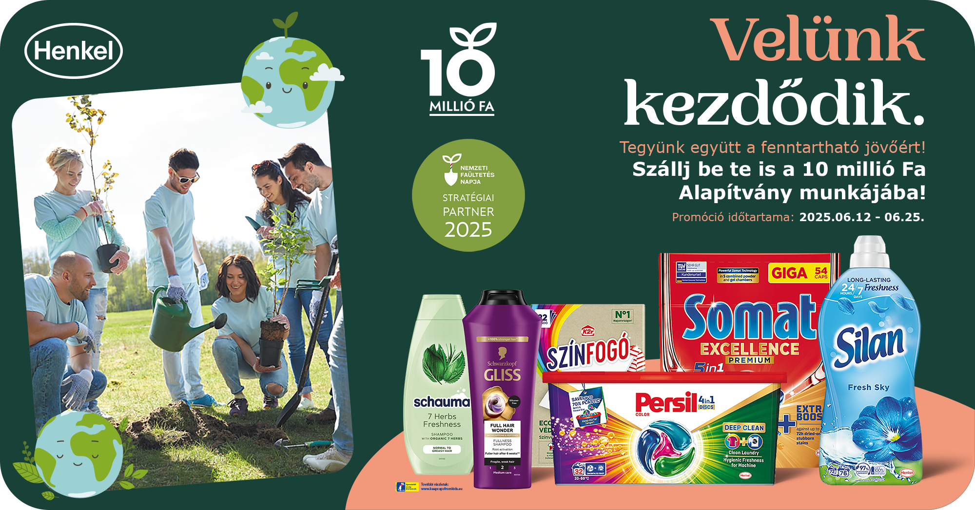 A promóció keretében a Henkel Magyarország Kft. a megvásárolt termékek után befolyt összeggel, de legalább 6 millió forinttal 3150 fa elültetéséhez járul hozzá.